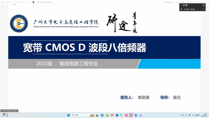 单奕谦同学提出了一种围绕宽带CMOS D波段八倍频器设计展开方法。选题源于D波段在6G通信、雷达和成像中的重要性,但传统方案面临输出功率密度下降、效率低、阻抗匹配困难三大瓶颈。研究采用集成低相位噪声VCO与倍频器级联的设计策略,避开了直接设计高频VCO的难点。关键技术包括倍频次数优化、相位噪声控制、非线性管处理及交叉耦合中和电容技术。实践难点在于高频匹配和工艺偏差影响。研究结果成功实现了八倍频功能,电磁仿真验证了其能有效抑制奇次谐波、放大偶次谐波。该设计具备高集成度、低相位噪声启动、良好的谐波抑制等优势,易于集成到锁相环(PLL)中,为D波段高频信号生成提供了有效解决方案。