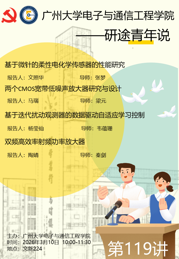 主办的“研途青年说”第119讲于3月10日10:00-11:30在文新楼224举行。本次主讲人为23级研究生文照华、马瑞、杨莹仙和陶婧。