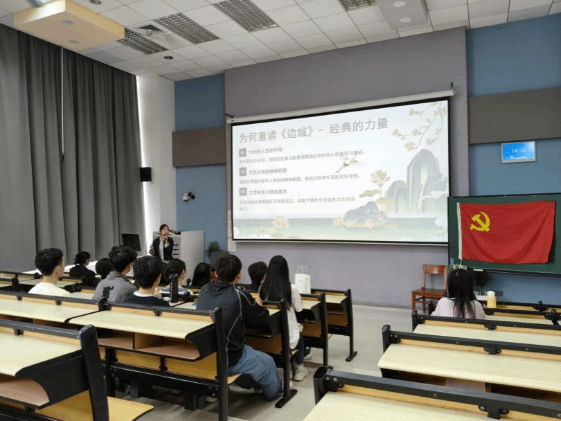 “为什么我们依然需要读《边城》?”杨文彪老师以这个直击人心的问题开篇,引发了在场党员的思考。他认为《边城》不仅在于优美的文字与动人的故事,更在于其传递的人性本真与精神追求,这正是当代青年需汲取的精神养分。随后,杨老师从书籍介绍、创作背景、读《边城》的当代意义以及《边城》的精神内核四个维度,深入讲解这部经典。